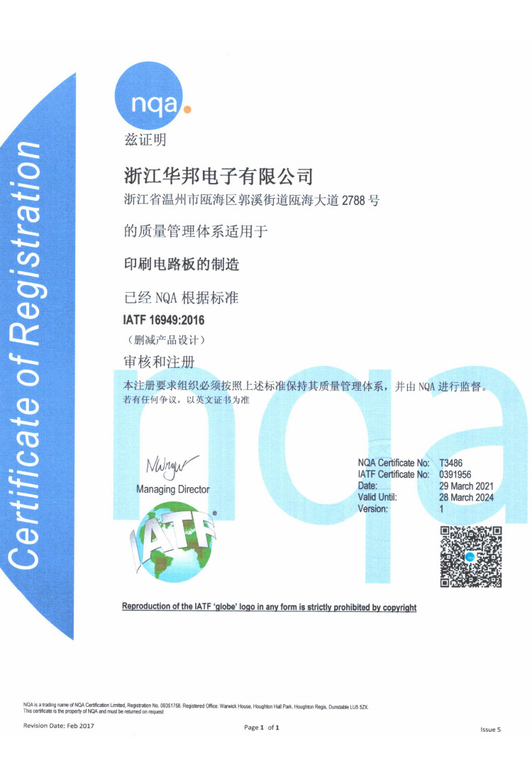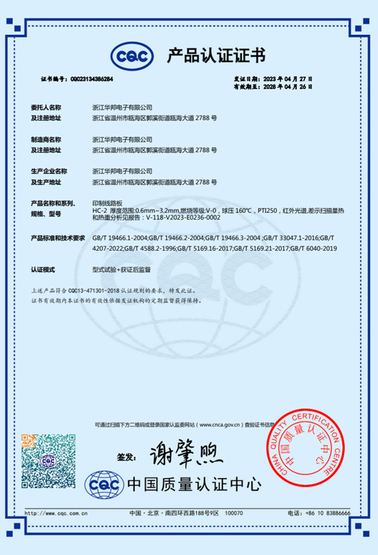 華邦通過了IATF16949證書、科技型中小企業(yè)證書、新型技術(shù)企業(yè)證書(有效期至2024年12月16日)、CQC證書等認(rèn)證精良的設(shè)備和生產(chǎn)工藝相結(jié)合,保證了每一款線路板出廠的產(chǎn)品都符合標(biāo)準(zhǔn)、符合客戶要求。